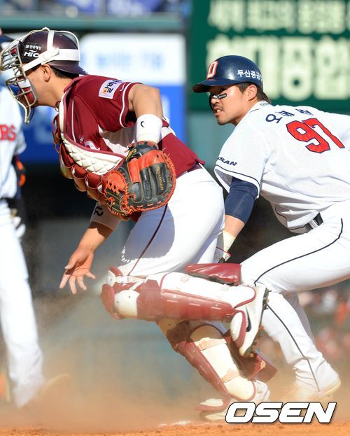 1회말 2사 1,3루 오재원이 1루주자 이종욱과 함께 더블스틸을 시도 세이프 되고 있다. /spjj@osen.co.kr