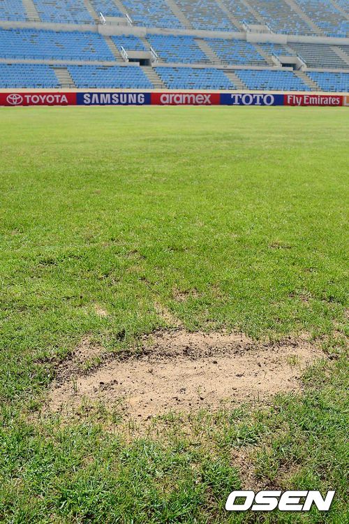 1일 오후(한국시간) 한국과 레바논의 2014 브라질 월드컵 아시아 최종 예선전을 앞둔 레바논 베이루트 카밀 샤문 스포츠시티 스타디움 내 잔디가 깊게 패여있다.