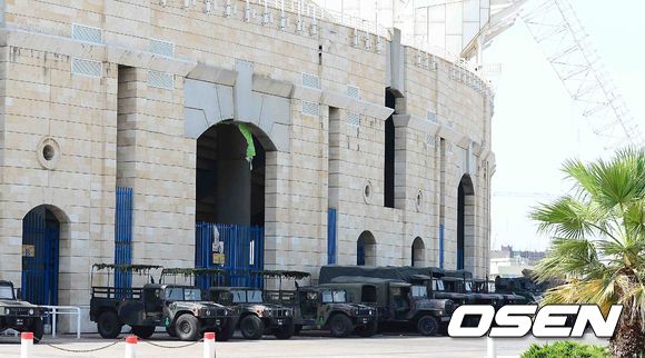 1일 오후(한국시간) 한국과 레바논의 2014 브라질 월드컵 아시아 최종 예선전을 앞둔 레바논 베이루트 카밀 샤문 스포츠시티 스타디움. 경기장 앞 군사시설이 모여있다.