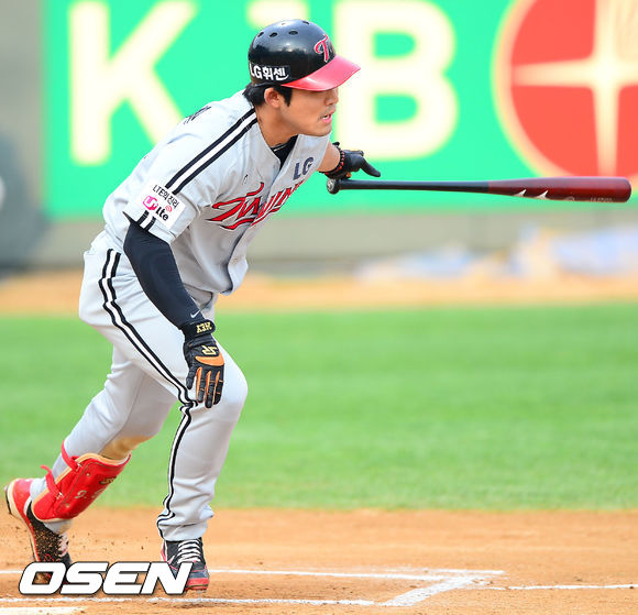 1일 오후 광주 무등구장에서 열린 2013 한국야쿠르트 세븐프로야구 KIA 타이거즈와 LG 트윈스의 경기, 4회초 무사 주자 2루 LG 정의윤가 중견수 앞 1타점 적시타를 날리고 있다.