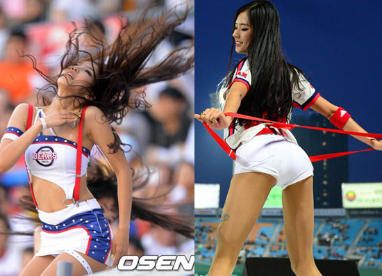 롯데 박기량 VS 두산 미녀, 이 둘의 섹시 치어리딩 대결이 초여름 밤 프로야구장의 열기를 더 달구는지 시원하게 식히는지는 관객 개개인의 판단 몫이다.