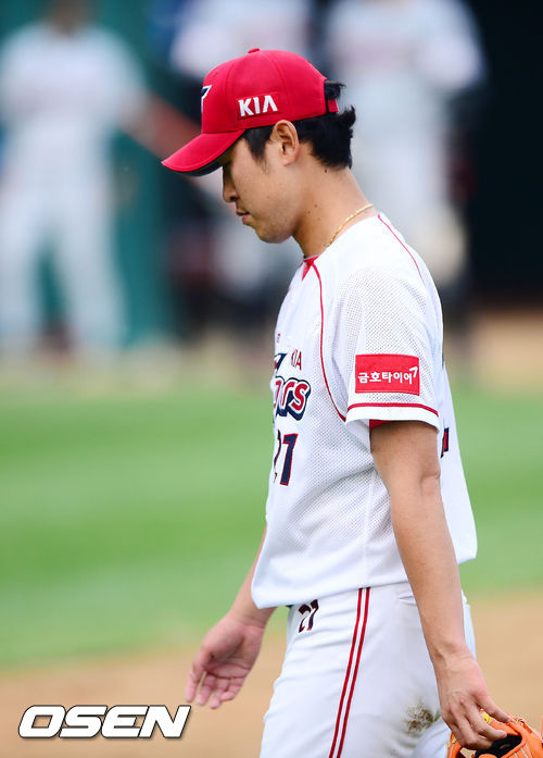 1일 오후 광주 무등구장에서 열린 2013 한국야쿠르트 세븐프로야구 KIA 타이거즈와 LG 트윈스의 경기, 7회초 1사 주자 3루 LG 이진영 타석에서 KIA 선발 윤석민이 교체되고 있다.