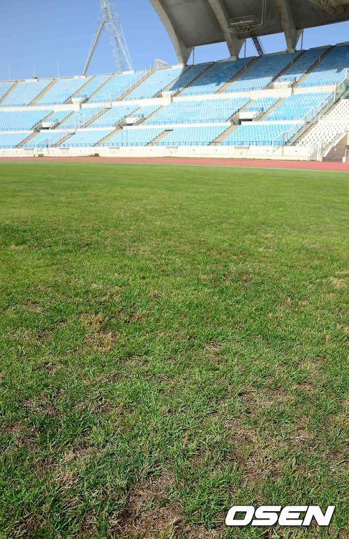 1일 오후(한국시간) 한국과 레바논의 2014 브라질 월드컵 아시아 최종 예선전을 앞둔 레바논 베이루트 카밀 샤문 스포츠시티 스타디움. 그라운드 곳곳에 잔디가 패여있다.