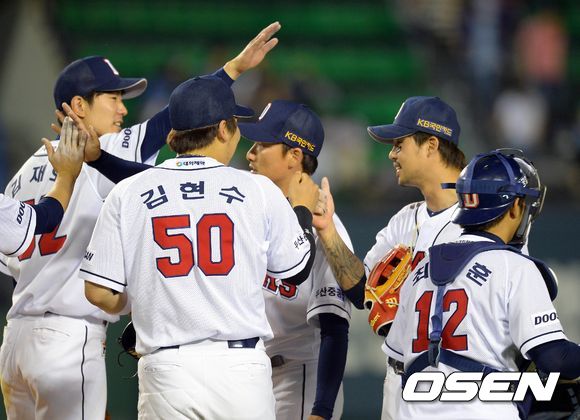 연패를 끊은 두산 선수들이 승리의 기쁨을 나누고 있다./spjj@osen.co.kr