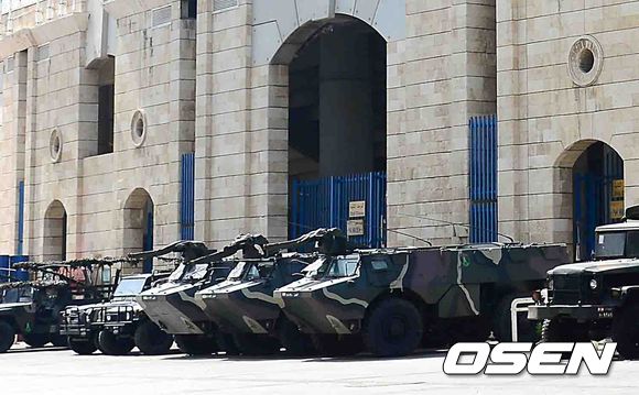 1일 오후(한국시간) 한국과 레바논의 2014 브라질 월드컵 아시아 최종 예선전을 앞둔 레바논 베이루트 카밀 샤문 스포츠시티 스타디움. 경기장 앞 군사시설이 모여있다.