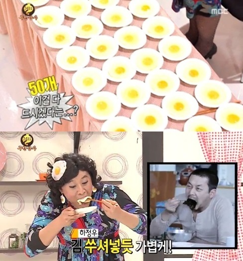 [OSEN=방송연예팀]개그맨 정준하가 달걀 프라이 50개 먹기에 도전했다.