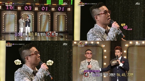 그러나 김건모는 판정단이 가장 김건모 같지 않은 인물을 뽑는 투표에서 1표를 받은 5, 6번에 비해 많은 3표를 받아 웃음을 자아냈다. 모창능력자들보다 많은 표를 차지, 3등을 차지한 것.