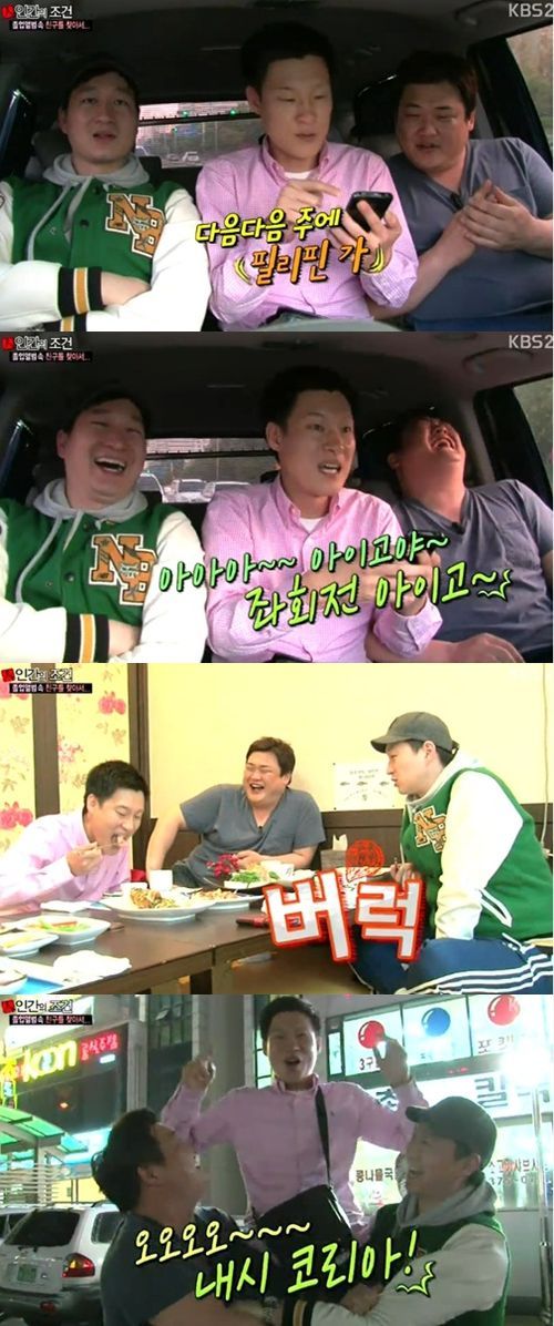 1일 방송된 KBS 2TV 예능프로그램 ‘인간의 조건’에는 진짜 친구를 찾는 미션을 체험하는 멤버(박성호 김준호 김준현 양상국 정태호 허경환)의 모습이 그려졌다.
