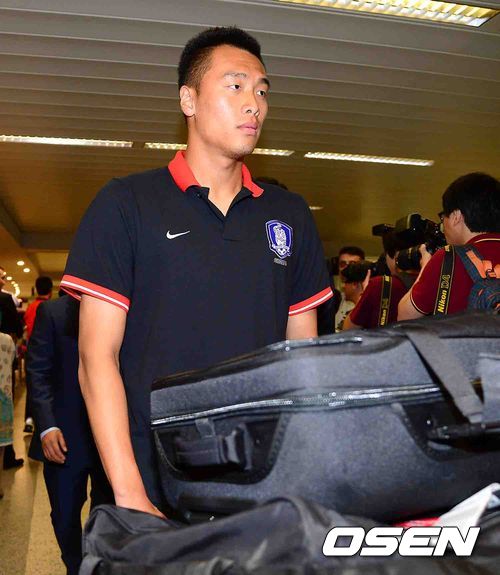 한국 축구대표팀 김신욱이 입국장을 빠져 나가고 있다.