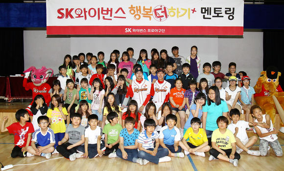 SK 와이번스의 조성우, 박승욱 선수가 5월 31일(금) 인천 부평남초등학교를 방문해 ‘SK와이번스 행복더하기 멘토링’(이하 행복더하기 멘토링) 프로그램에 참여했다.