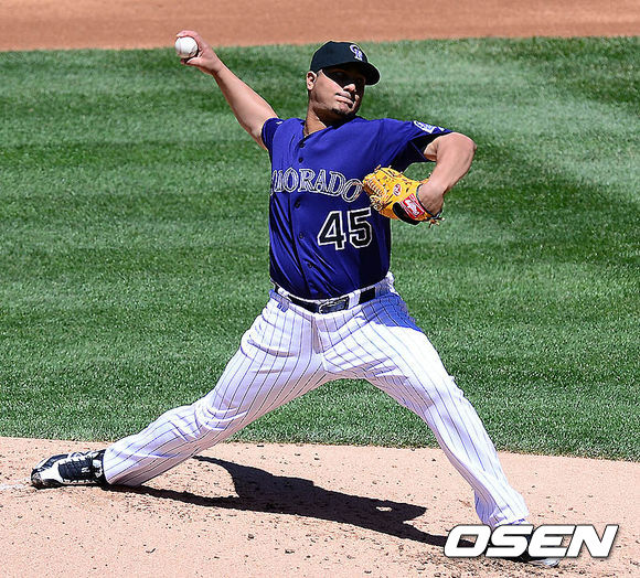 2일 새벽(이하 한국시간) 미국 콜로라도주 덴버 쿠어스 필드에서 열린 콜로라도 로키스와 LA 다저스의 경기 로키스 선발 샤신이 역투하고 있다.