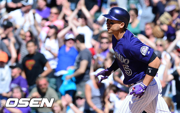 2일 새벽(이하 한국시간) 미국 콜로라도주 덴버 쿠어스 필드에서 열린 콜로라도 로키스와 LA 다저스의 경기 5회말 2사 2루 곤살레스가 투런포를 치고 베이스를 돌고 있다.