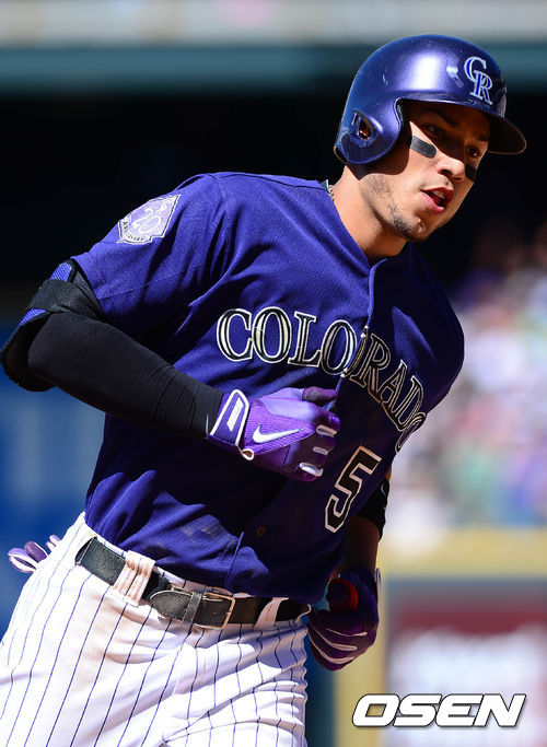 2일 새벽(이하 한국시간) 미국 콜로라도주 덴버 쿠어스 필드에서 열린 콜로라도 로키스와 LA 다저스의 경기 5회말 2사 3루 곤살레스가 투런포를 친 후 베이스를 돌고 있다.
