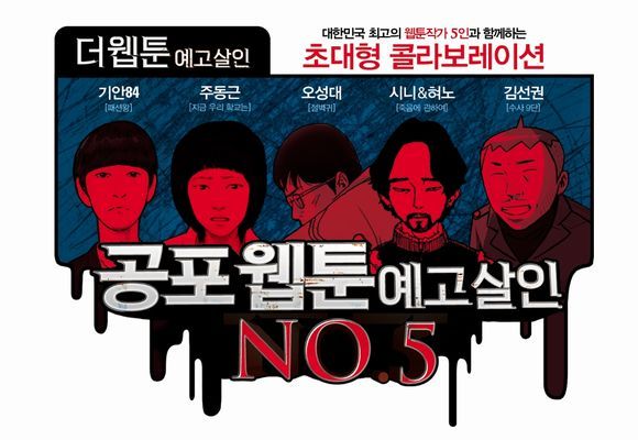 2일 영화 배급사인 CJ엔터테인먼트에 따르면 ‘더 웹툰:예고살인’은 포털사이트 네이버에서 웹툰 작가 5인과 함께 하는 콜라보레이션 ‘공포웹툰:예고살인 NO.5'의 첫 번째 작품을 이날 자정 공개했다.