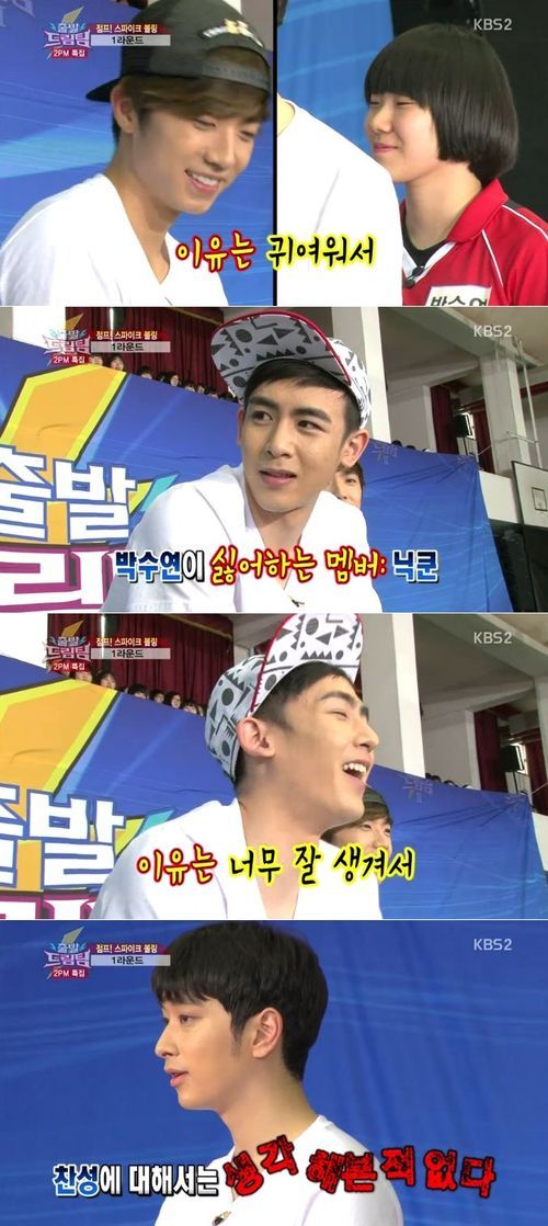 그룹 2PM의 닉쿤이 일신여상 배구팀 박수연 학생으로부터 싫어하는 멤버로 꼽혔다.