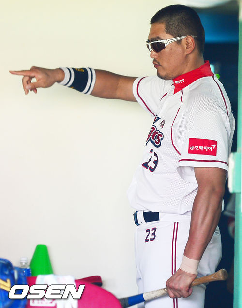 2일 오후 광주 무등구장에서 2013 한국야쿠르트 세븐프로야구 KIA 타이거즈와 LG 트윈스의 경기가 열릴 예정인 가운데 양 팀 훈련시간에 KIA 최희섭이 삭발한 모습으로 준비를 하고 있다.