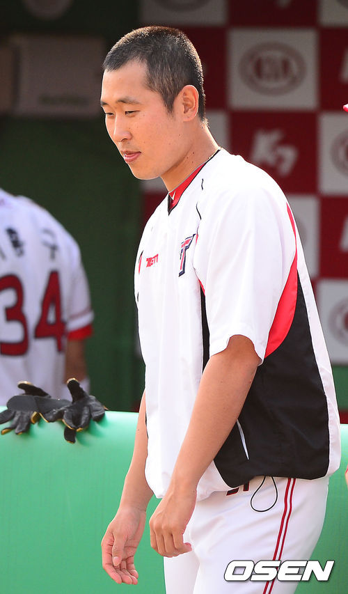 2일 오후 광주 무등구장에서 2013 한국야쿠르트 세븐프로야구 KIA 타이거즈와 LG 트윈스의 경기가 열릴 예정인 가운데 KIA 윤석민이 삭발한 모습으로 준비를 하고 있다.