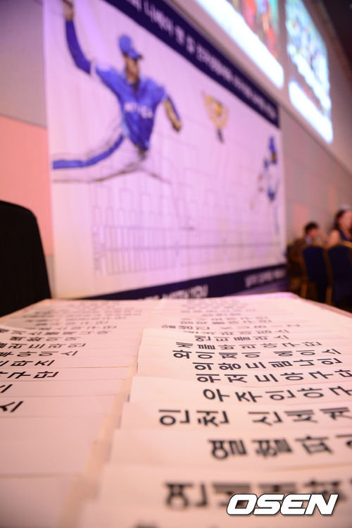 참가자들이 대진추첨을 기다리고 있는 가운데 참가팀들의 명단이 나란히 놓여져 있다./dreamer@osen.co.kr
