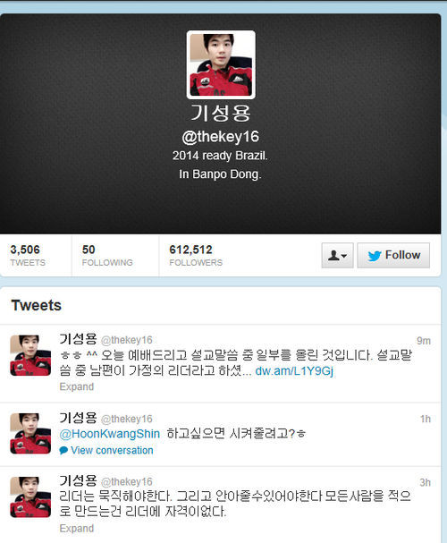 기성용(24, 스완지 시티)은 2일 자신의 트위터를 통해 "리더는 묵직해야 한다. 그리고 안아줄 수 있어야 한다. 모든 사람을 적으로 만드는건 리더 자격이 없다"고 올렸다. 이에 신광훈(26, 포항 스틸러스)은 "뭐.. 리더할라고?"라고 댓글을 달았고, 기성용은 "(리더)하고 싶으면 시켜줄려고?"라고 웃음을 자아냈다.