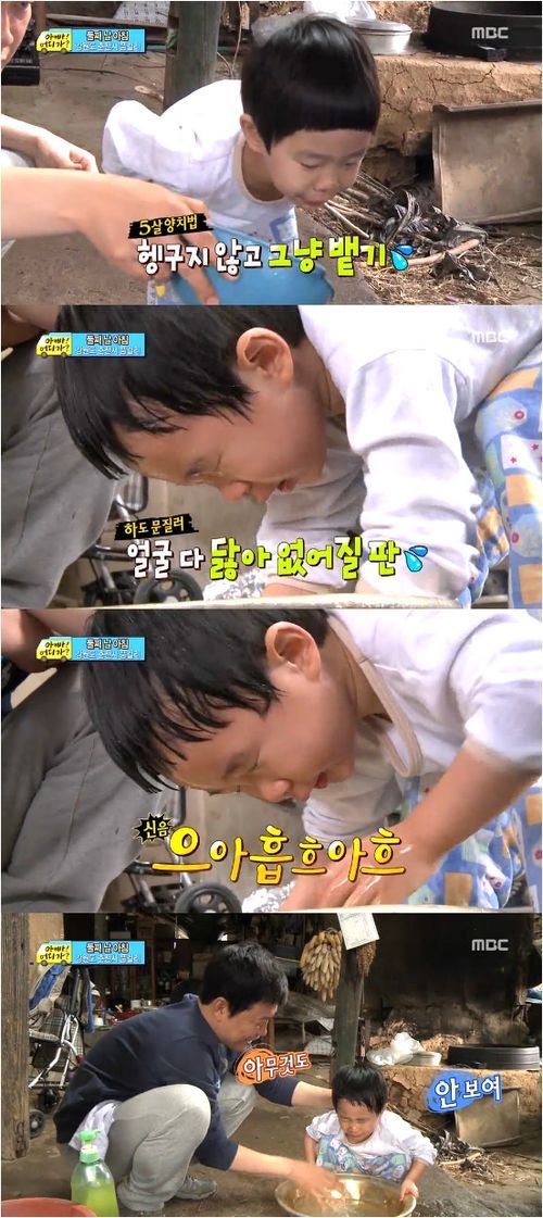 5살 김민율이 힘이 넘치는 일명 ‘불꽃 세수’를 했다.