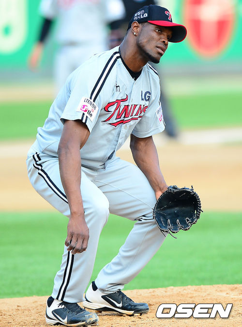 2일 오후 광주 무등구장에서 열린 2013 한국야쿠르트 세븐프로야구 KIA 타이거즈와 LG 트윈스의 경기, 4회말 무사 주자 없는 상황에서 나지완과 이범호를 내리 포볼로 내보낸 LG 선발 리즈가 아쉬워하고 있다.
