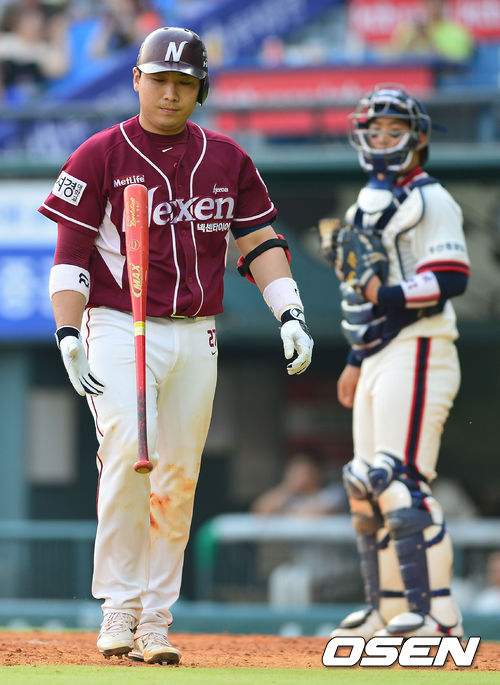 2일 오후 서울 잠실야구장에서 '2013 한국야쿠르트 세븐 프로야구' 두산 베어스 대 넥센 히어로즈의 경기가 열렸다. 5회초 넥센 공격 1사 주자없는 상황 9번 허도환이 두산 선발 유희관의 공에 루킹 삼진 당한 뒤 더그아웃으로 들어오고 있다.