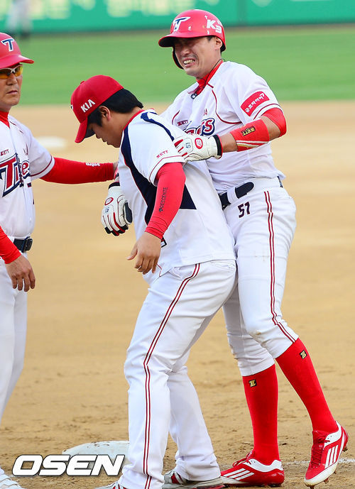 KIA 외야수 김원섭이 경기도중 발목 부상으로 도중 교체됐다.