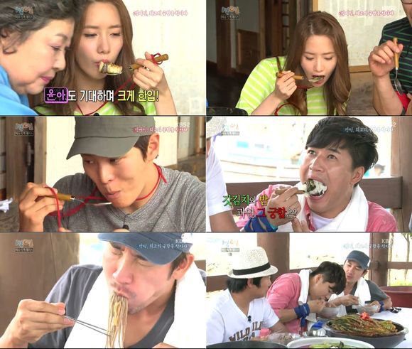 '1박2일' 멤버들은 2일 오후 방송된 KBS 2TV '해피선데이-1박2일 시즌2'(이하 '1박2일')에서 일일 멤버로 합류한 소녀시대 윤아와 함께 전남 여수에서 제대로된 먹방을 선보였다.