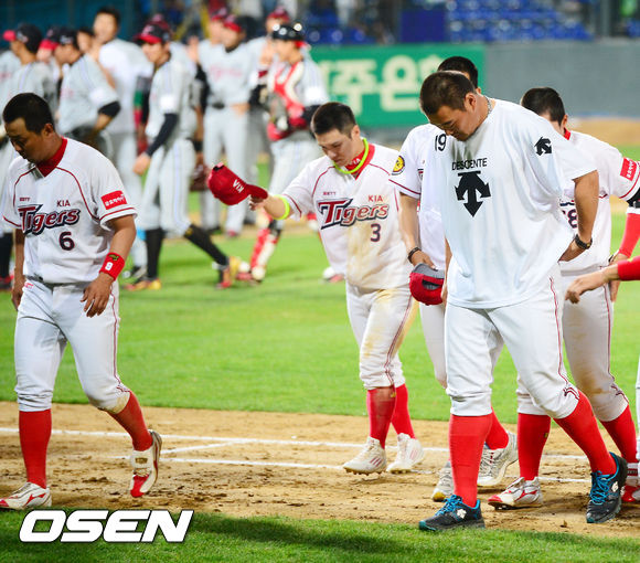 경기를 마치고 KIA 선수들이 고개숙여 인사하고 있다./ rumi@osen.co.kr