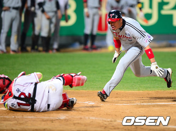 10회초 2사 주자 1루 LG 문선재가 좌익수 왼쪽 역전 1타점 적시타때 이병규가 홈으로 몸을 날리려 할때 차일목이 누워있다./ rumi@osen.co.kr