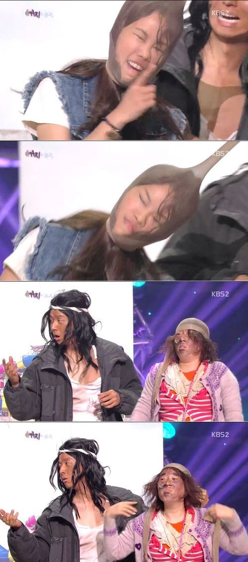 김지민은 2일 오후 방송된 KBS 2TV '개그콘서트'에서 김영희가 씌운 스타킹을 얼굴에 썼다.