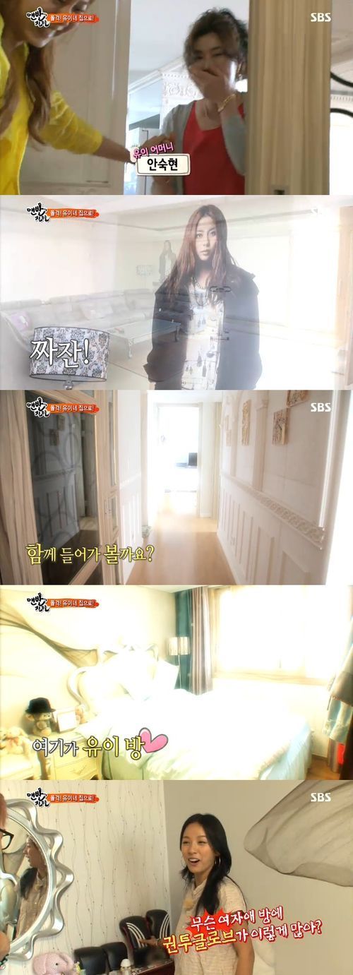 유이의 엄마는 2일 SBS '일요일이 좋다-맨발의 친구들'(이하 맨친)에서 멤버들의 집을 돌아가며 기습 방문하는 과정에서 방송에 자태를 드러냈다. 이날 '맨친' 멤버들은 MT 경비를 마련하기 위해 집 순례를 했다.