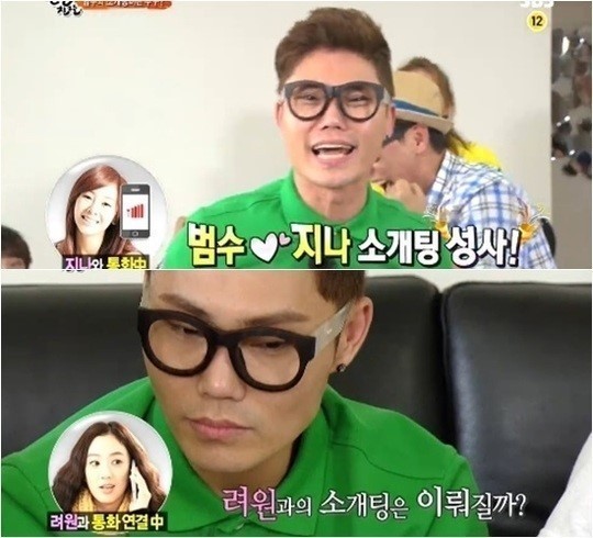 한편 이날 방송된 SBS '일요일이좋다-맨발의친구들'에서는 멤버들이 김범수의 소개팅을 성사시켜주는 대결을 펼쳤다. 여자연예인에게 전화를 걸어 김범수와의 소개팅을 많이 성사시킨 팀이 MT 경비 5만원을 획득할 수 있는 게임을 한 것.