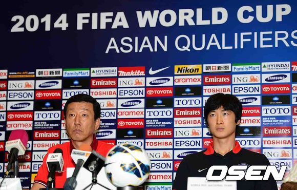 3일 오후(한국시간) 레바논 베이루트 홀리데이인 호텔에서 열린 한국 축구국가대표팀 기자회견에서 한국 최강희 감독과 곽태휘가 기자회견을 하고 있다.