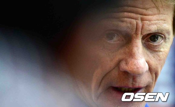 3일 오후(한국시간) 레바논 베이루트 홀리데이인 호텔에서 열린 한국 축구국가대표팀 기자회견에서 레바논 테오 부커 감독이 기자회견을 하고 있다.