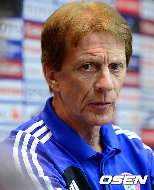 3일 오후(한국시간) 레바논 베이루트 홀리데이인 호텔에서 열린 한국 축구국가대표팀 기자회견에서 레바논 테오 부커 감독이 취재진의 질문을 듣고 있다.