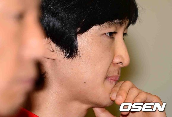 3일 오후(한국시간) 레바논 베이루트 홀리데이인 호텔에서 열린 한국 축구국가대표팀 기자회견에서 한국 곽태휘가 취재진의 질문을 듣고 있다.