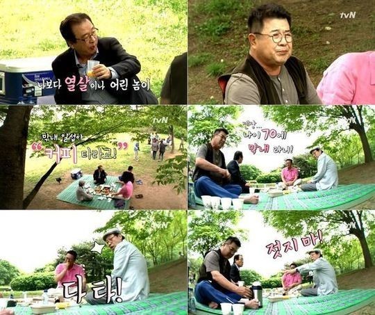 이에 백일섭은 "나보고 커피를 타라고? 못 타!"라고 말하며 반항했지만 결국 한쪽 구석에 앉아 커피를 타는 굴욕을 당했다. 뿐만 아니라 신구는 커피를 타는 백일섭을 보며 "다 타", "젓지 마" 등의 간섭을 해 녹록치 않을 백일섭의 막내 생활을 예고했다.
