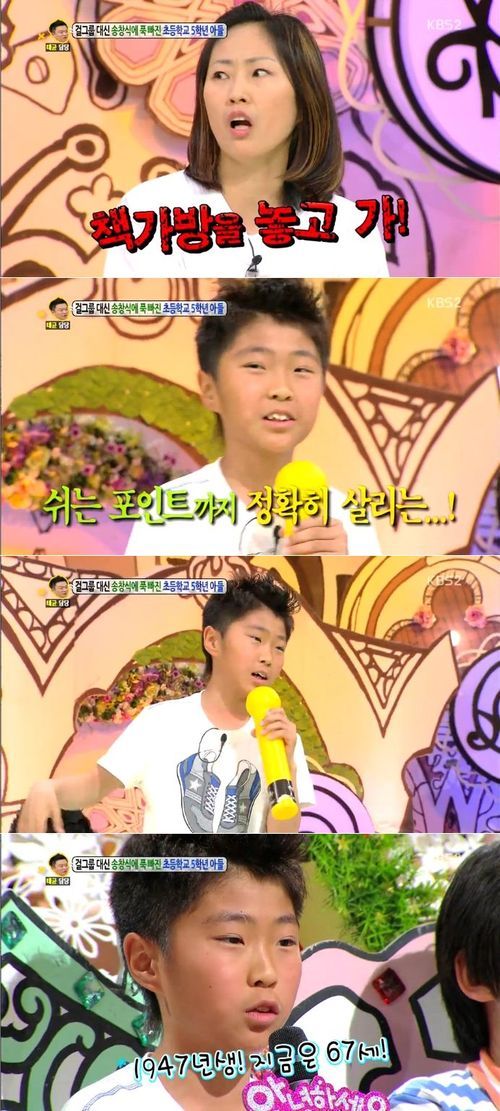 걸그룹 대신 송창식 노래에 빠진 이 초등학생은 3일 오후 방송된 KBS 2TV 예능프로그램 '대국민 토크쇼 안녕하세요'(이하 '안녕하세요')에서 이 같이 말했다. 그는 이날 스튜디오에서 구성진 목소리로 어깨춤까지 곁들여 송창식 노래를 완벽하게 소화했다.