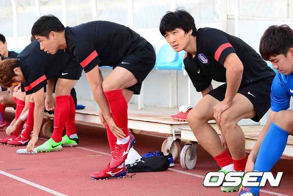 4일 새벽(한국시간) 레바논 베이루트 카밀 샤문 스포츠시티 스타디움에서 열린 한국 축구국가대표팀의 훈련, 준비를 마친 곽태휘와 이근호가 훈련장으로 나가고 있다.