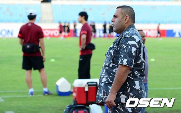 4일 새벽(한국시간) 레바논 베이루트 카밀 샤문 스포츠시티 스타디움에서 열린 한국 축구국가대표팀의 훈련, 레바논 군인이 대표팀의 훈련장을 호위하고 있다.