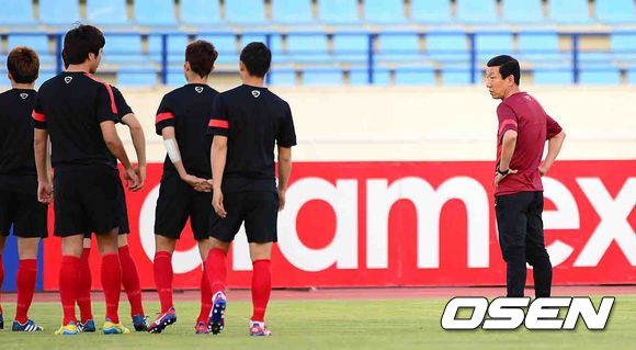 4일 새벽(한국시간) 레바논 베이루트 카밀 샤문 스포츠시티 스타디움에서 열린 한국 축구국가대표팀의 훈련, 최강희 감독이 훈련 중인 선수들을 바라보고 있다.