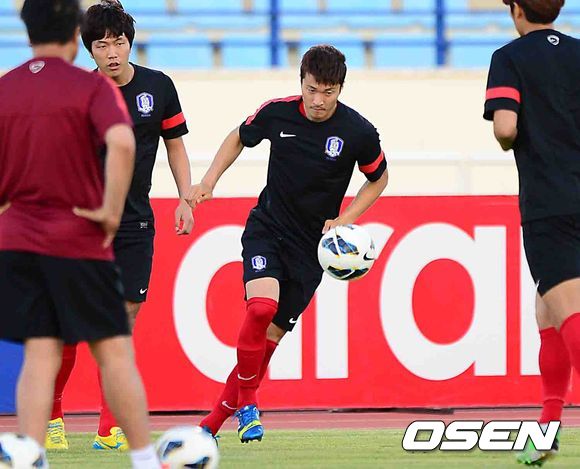 4일 새벽(한국시간) 레바논 베이루트 카밀 샤문 스포츠시티 스타디움에서 열린 한국 축구국가대표팀의 훈련, 박종우가 패스 훈련을 하고 있다.