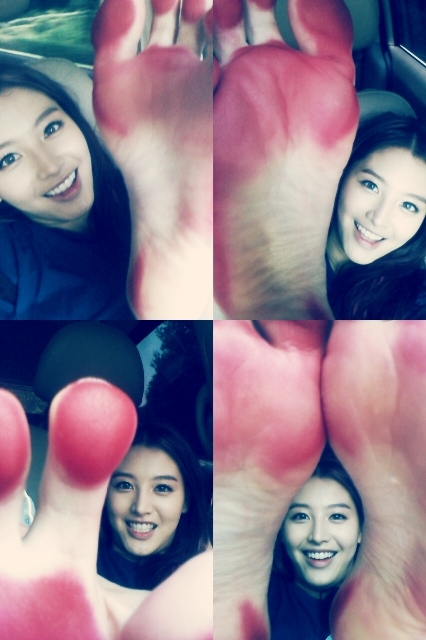 그룹 레인보우의 김재경이 빨간 발바닥을 자랑하는 사진을 올렸다.