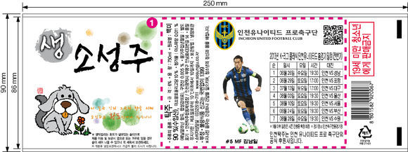 인천 유나이티드 선수들의 플레이 사진 등이 인천의 대표 막걸리인 ‘소성주’의 라벨에 실린다.