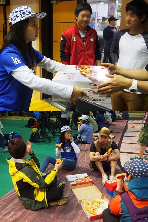 송지효가 지난달 27일 경기 가평에서 진행된 SBS '런닝맨' 촬영 현장에서 200명에게 피자를 선물한 것.