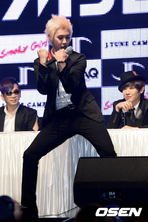 4일 오후 서울 마포구 서교동 메세나폴리스 롯데카드 아트센터에서 열린 엠블랙 미니앨범 발매 기자회견 & 쇼케이스에서 엠블랙 승호가 안무를 선보이고 있다.