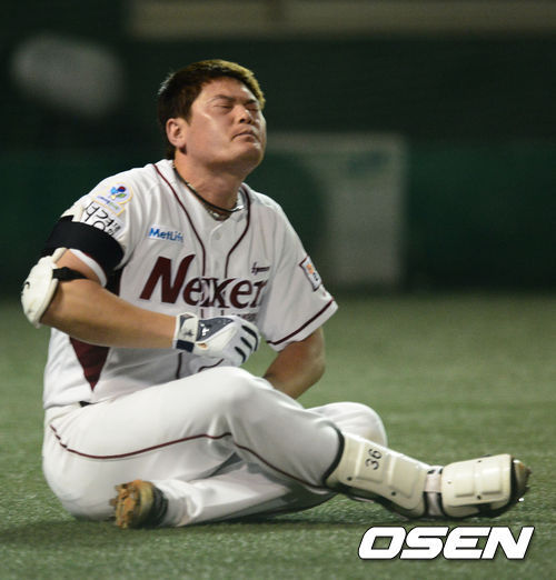 넥센 히어로즈 외야수 이성열(29)이 아찔한 팔꿈치 부상을 당했다.