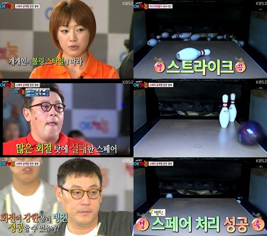 김슬기 프로의 강의를 받은 강호동은 단번에 스페어 처리를 해내 희망을 엿보게 했다.