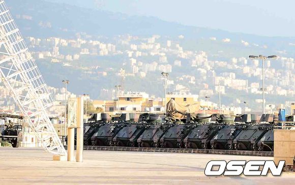 5일 새벽(한국시간) 레바논 베이루트 카밀 샤문 스포츠시티 스타디움에서 열린 2014브라질월드컵 아시아지역 최종예선 A조 6차전 한국과 레바논의 경기, 경기에 앞서 레바논 군장비가 경기장을 호위하고 있다.